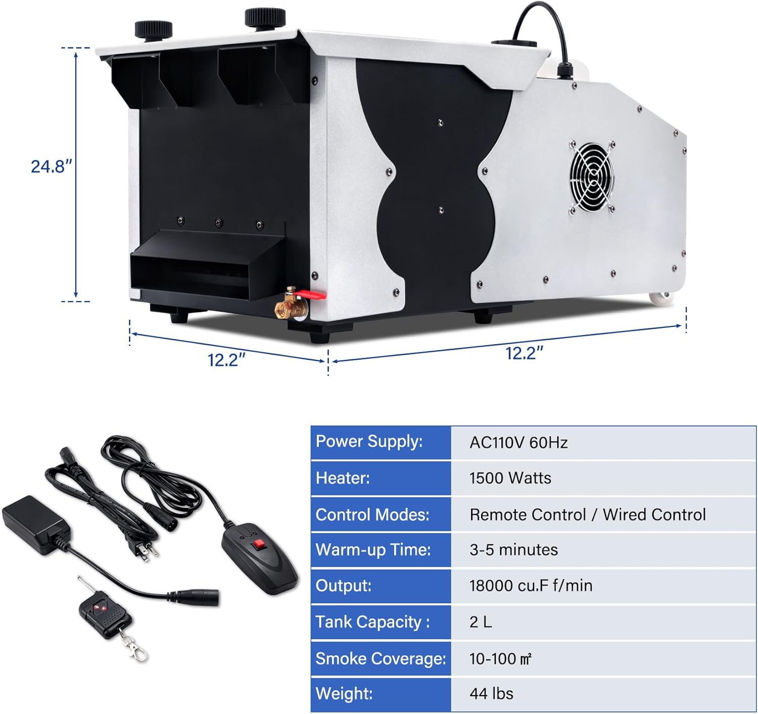 Benefits: High Output, Remote Specs: 6.0 lbs, Metal/Fog Machine, Halloween/Outdoor |