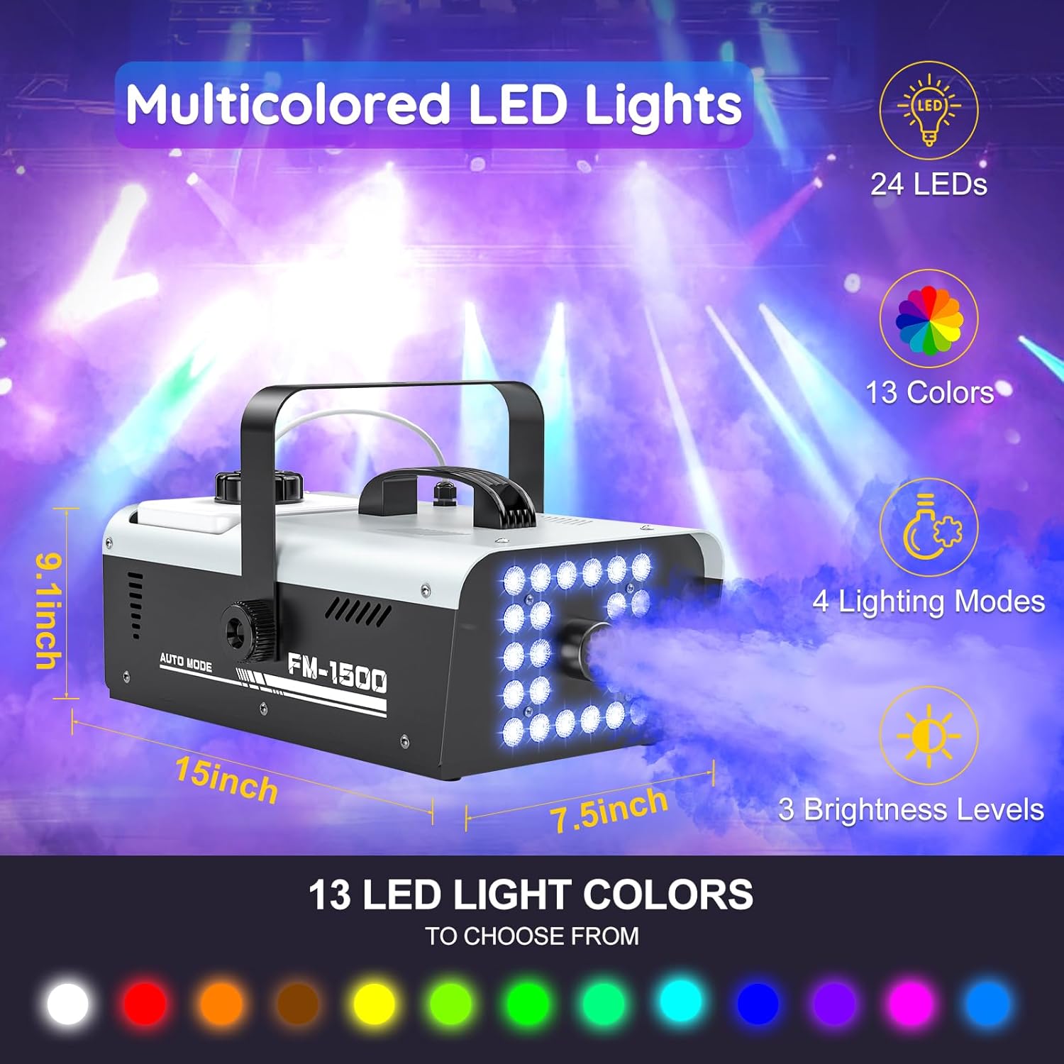 Benefits: Multi-Color, Wireless Specs: 3.9 lbs, Plastic/Fog Machine, Halloween/Party |