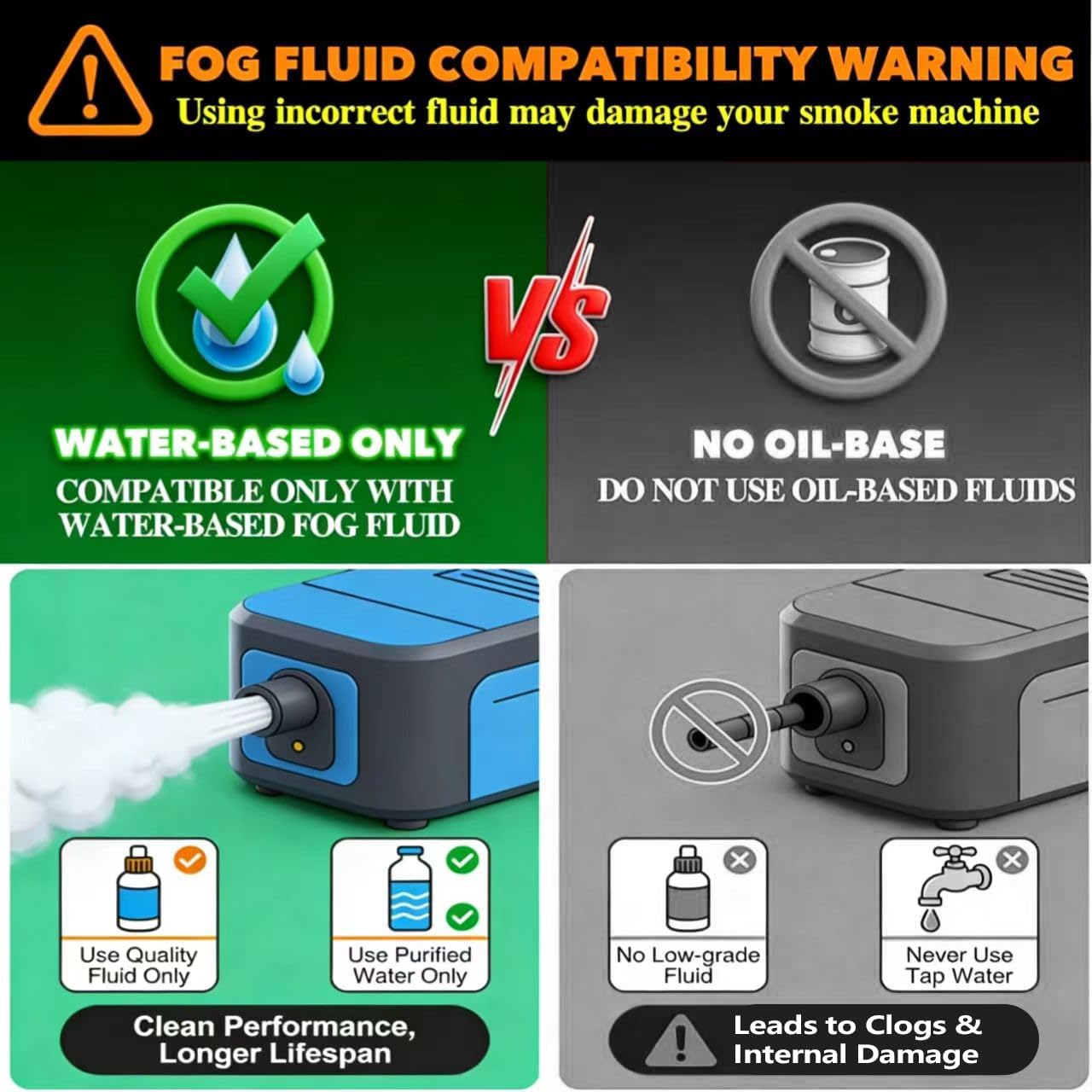 Fog machines typically use water-based glycol or glycerin fluids, which are safe and produce dense fog.