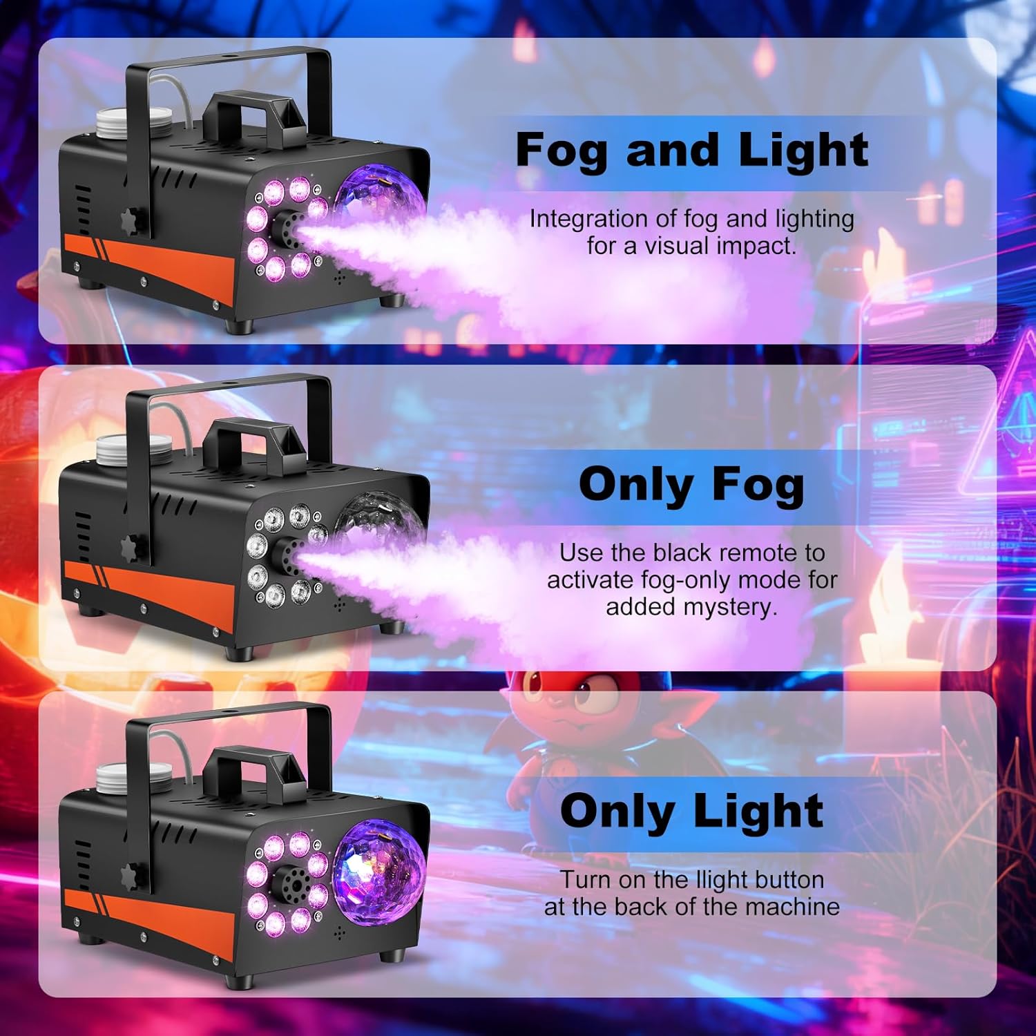 Benefits: Wireless, Colorful Specs: 3.8 lbs, Plastic/Fog Machine, Halloween/Parties |
