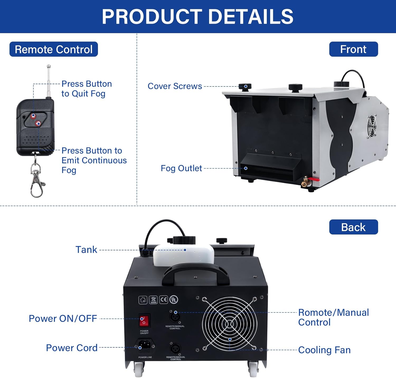 6. TCFUNDY Fog Machine 18000CFM Control
