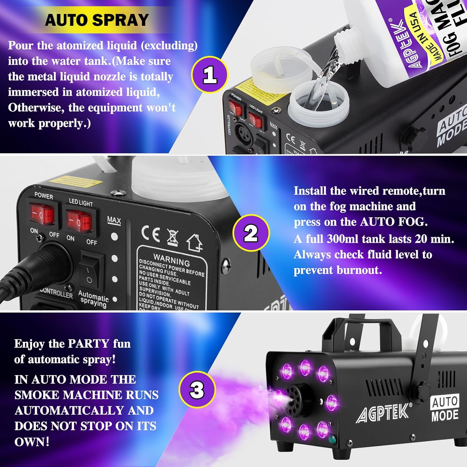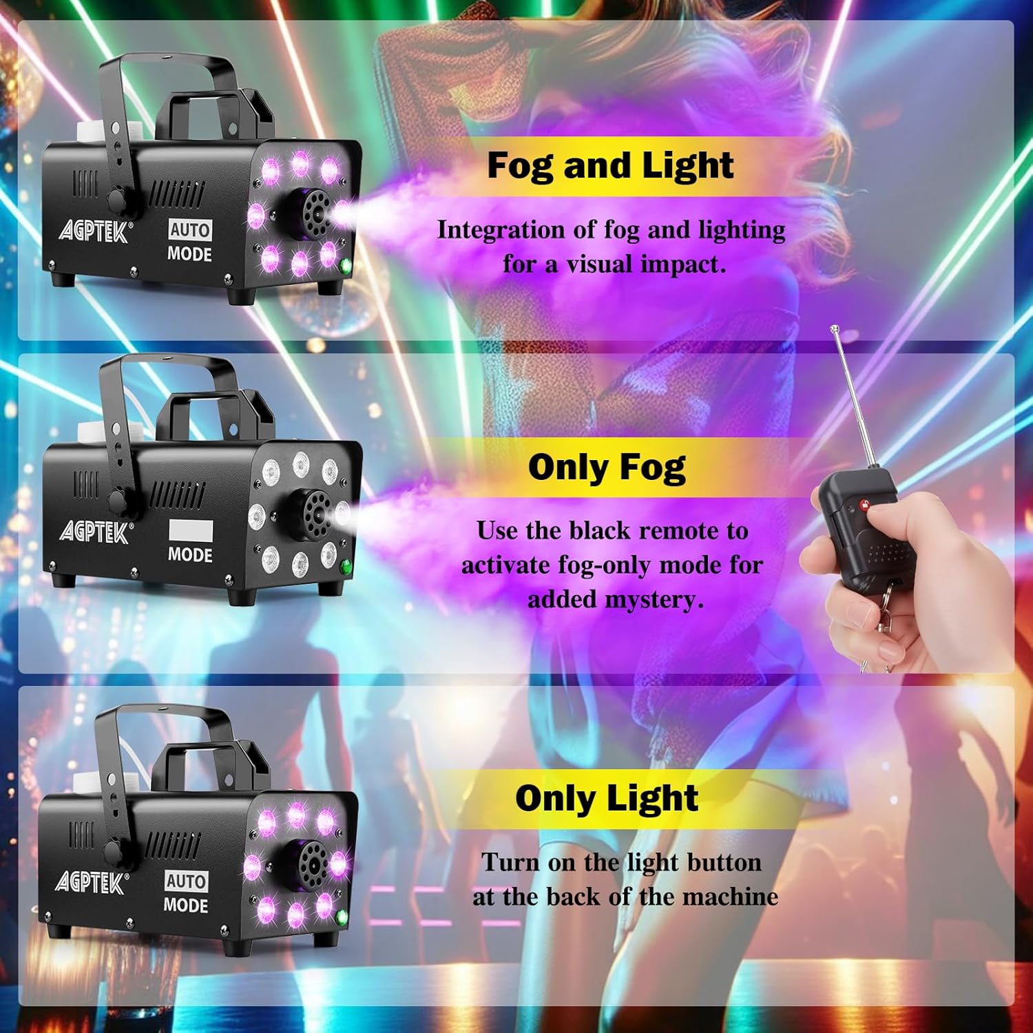 4. AGPTEK Colorful Receiver Wireless Fog Machine