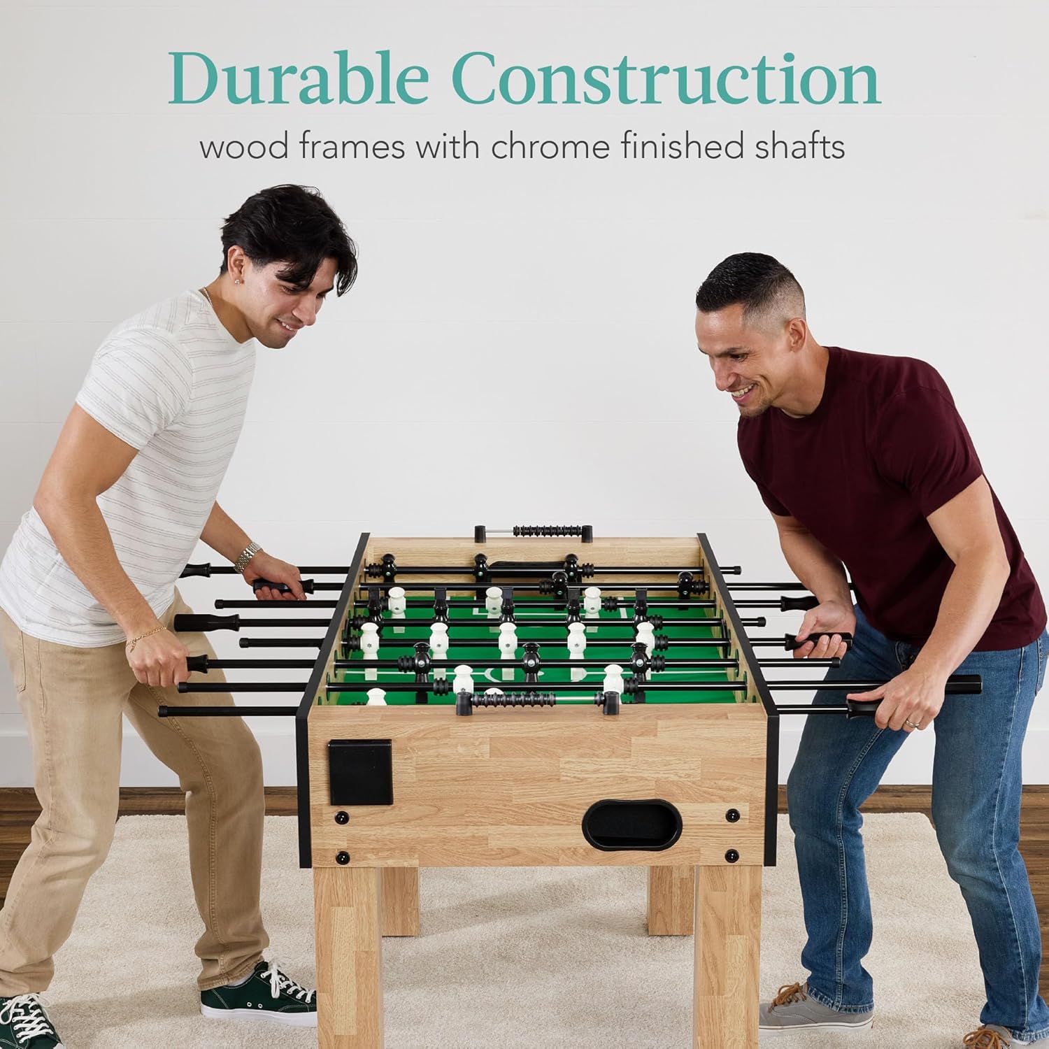 Tables made with solid wood or metal frames and steel rods typically provide durability and better gameplay.