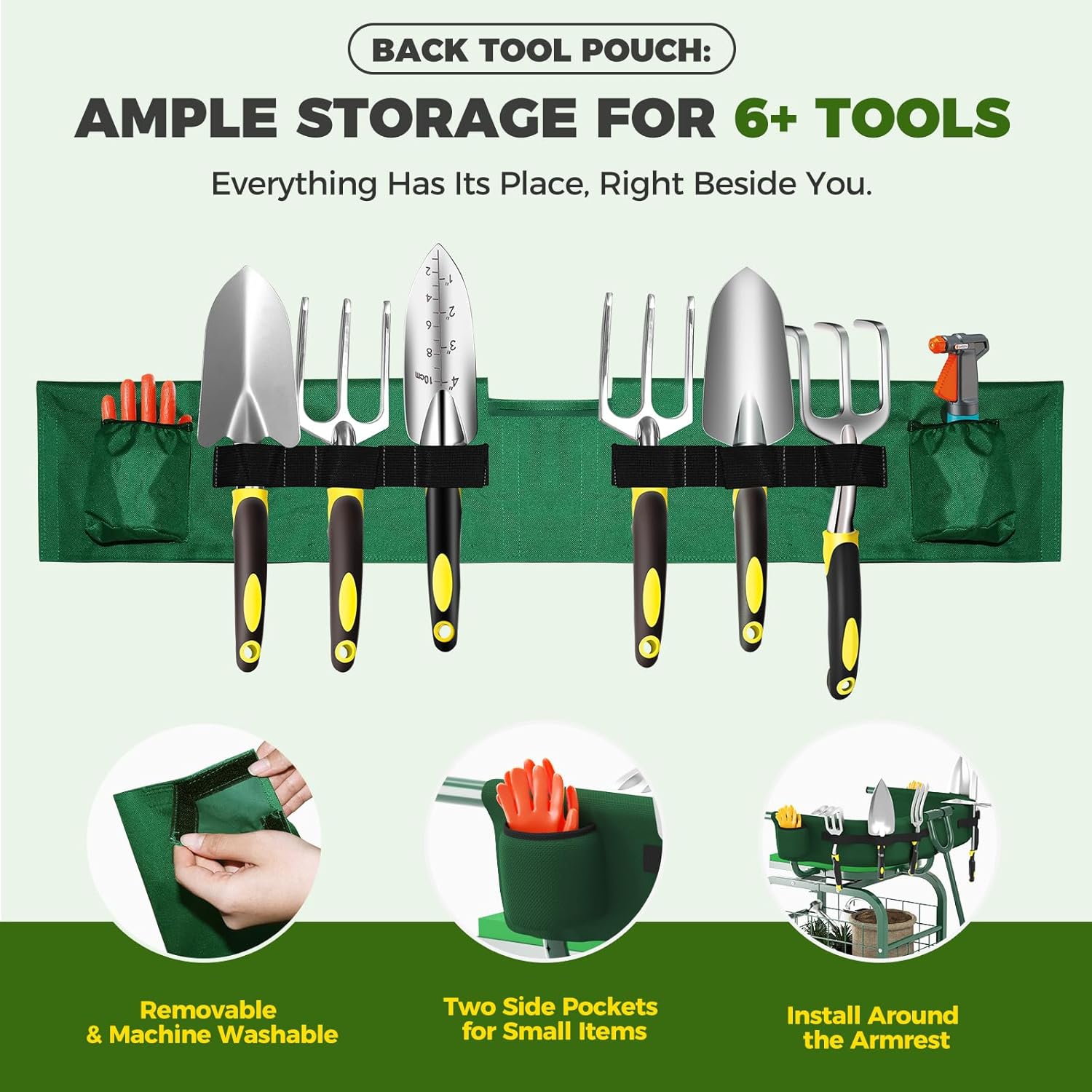 Some models include pockets or compartments for storing gardening tools and supplies for convenience.